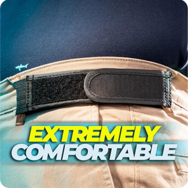 Holden Flex™ attaches securely to your belt loops and stays in place all day — no slipping, no readjusting, no bulky buckle.